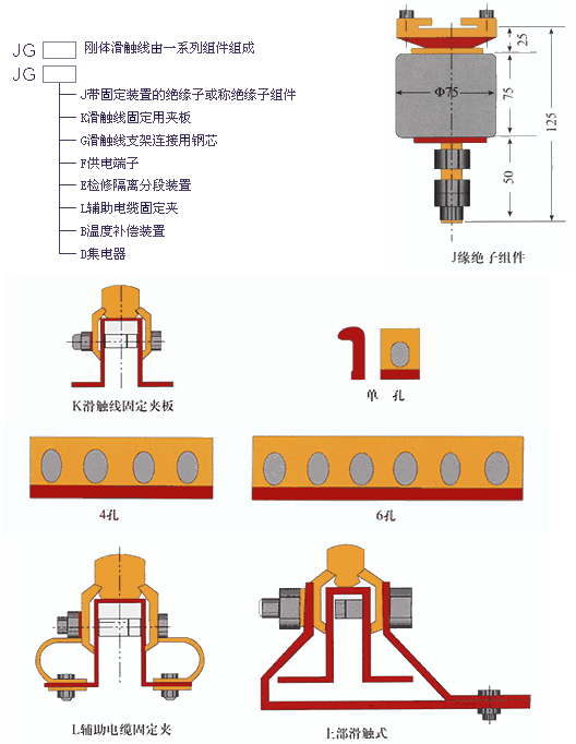 JGH-II型剛體滑觸線由梯型銅棒和槽鋼或由“T”型銅排和槽型鋁結(jié)合及由燕尾槽銅棒和高鋼度工字鋼相構(gòu)成。剛體滑觸線用高強(qiáng)度專用絕緣子作支撐,從而組成向各種起重機(jī)械設(shè)備饋電的移動(dòng)滑觸線。